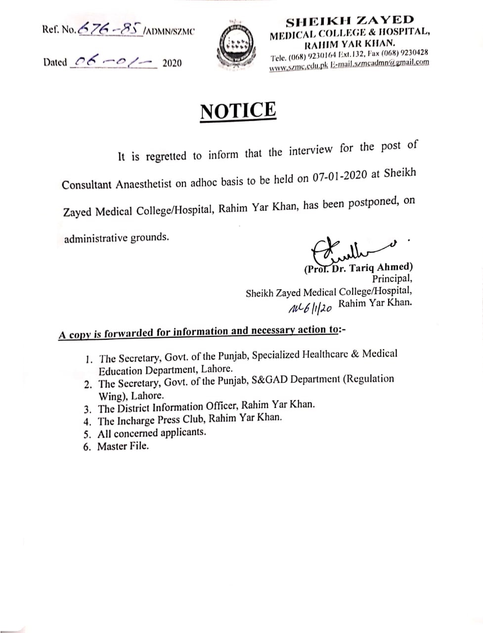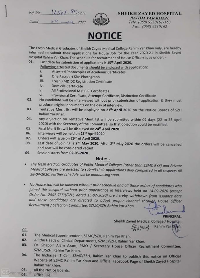 (Only for Fresh Medical Graduate of Sheikh Zayed Medical College Rahim Yar Khan)